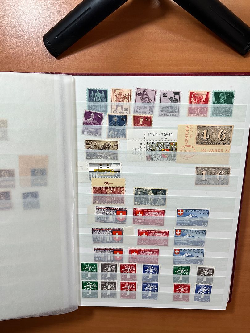 Dit album bevat zowel postfris als ongebruikt. Het postfrisse gedeelte bevat meerdere Pro Juventute series, blokken, PAX, zegels uit blok en nog meer. Zoals bijvoorbeeld de landschappen 1934 (michel 270-276) en ook 1936 297-305 met gewoon papier. Daar zit ook de 301y type I bij (€250!). Totale cataloguswaarde voor het postfrisse gedeelte €1500,00. Ongebruikte gedeelte niet geteld. Daar zit ook het insectenblok bij.