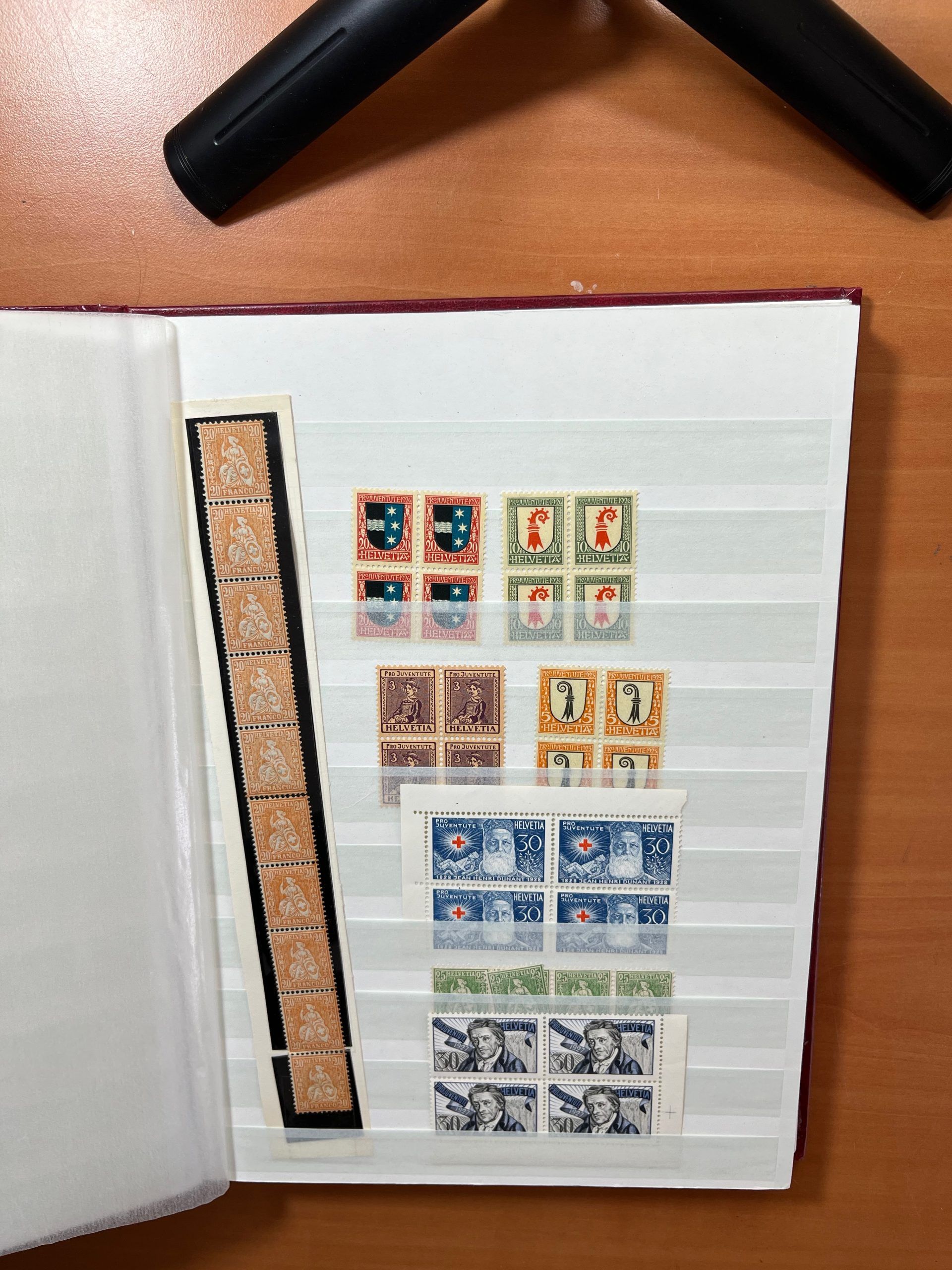 This album contains both MNH and unused. The MNH part contains several Pro Juventute series, blocks, PAX, stamps from blocks and more. Such as the landscapes 1934 (michel 270-276) and also 1936 297-305 with regular paper. This also includes the 301y type I (€250!). Total catalogue value for the mint part €1500.00. Unused part not counted. This also includes the insect block. This collection is shipped free of charge to an address in the Netherlands. Please contact us for shipping outside the Netherlands.