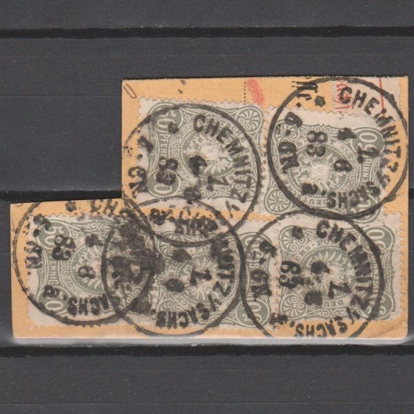 Duitsland 1880 44 5 keer op briefstukje gestempeld