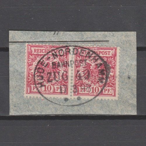 Duitsland 1889 47 Kroon/Adelaar in paar Huse-Norderhamm Bahnhof gestempeld