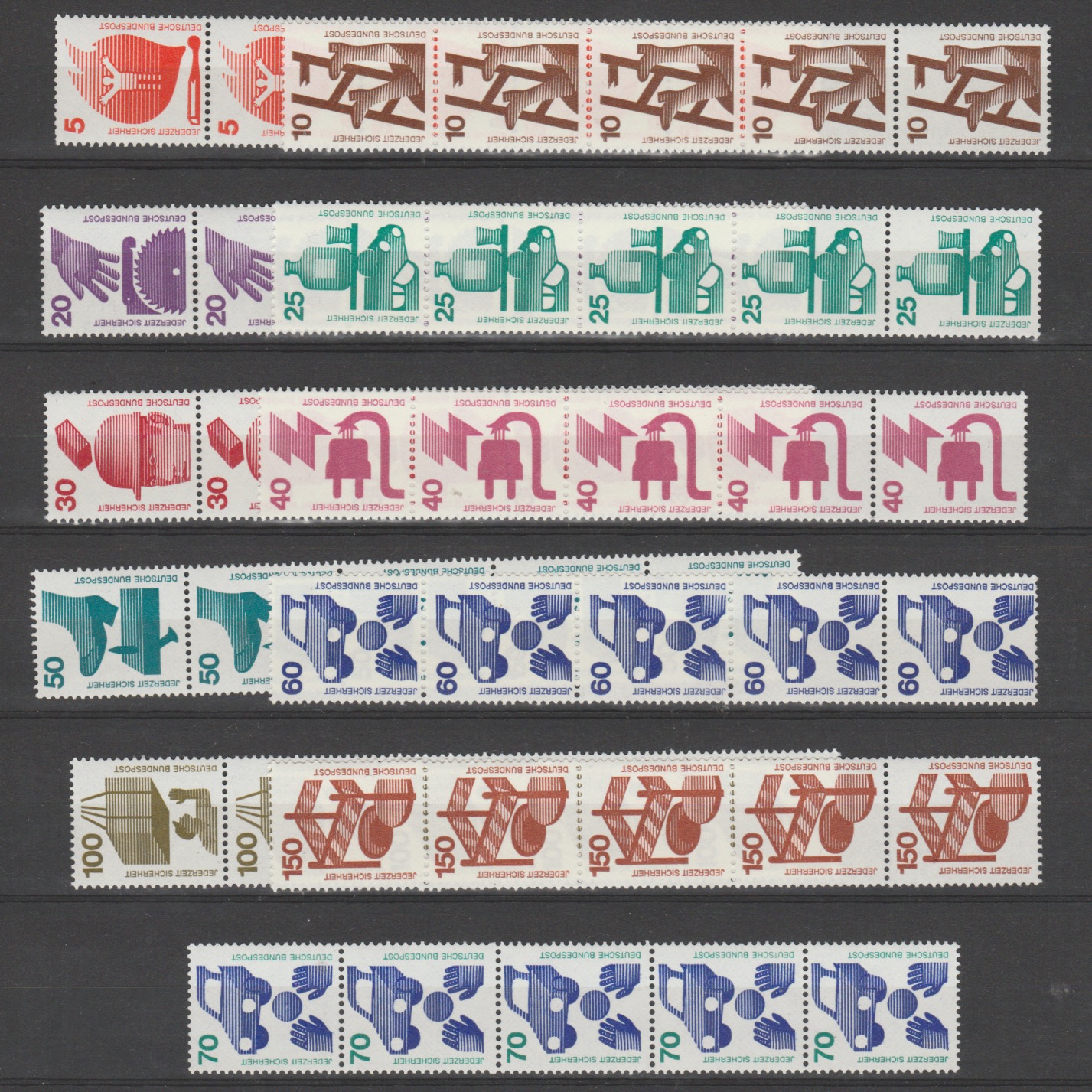 Duitsland 1971 694-703R + 773R Rollenmarken 5 streifen aantal