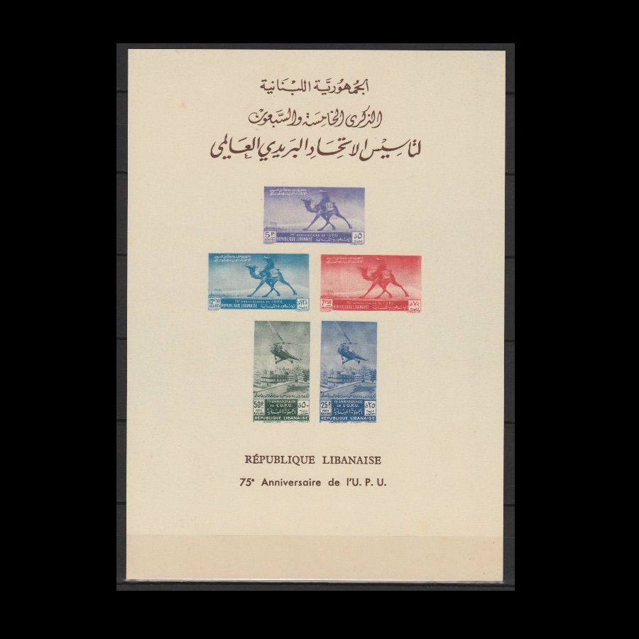 Libanon 1949 Blok 12 b UPU zonder waarde inschrift en bruine tekst aantal