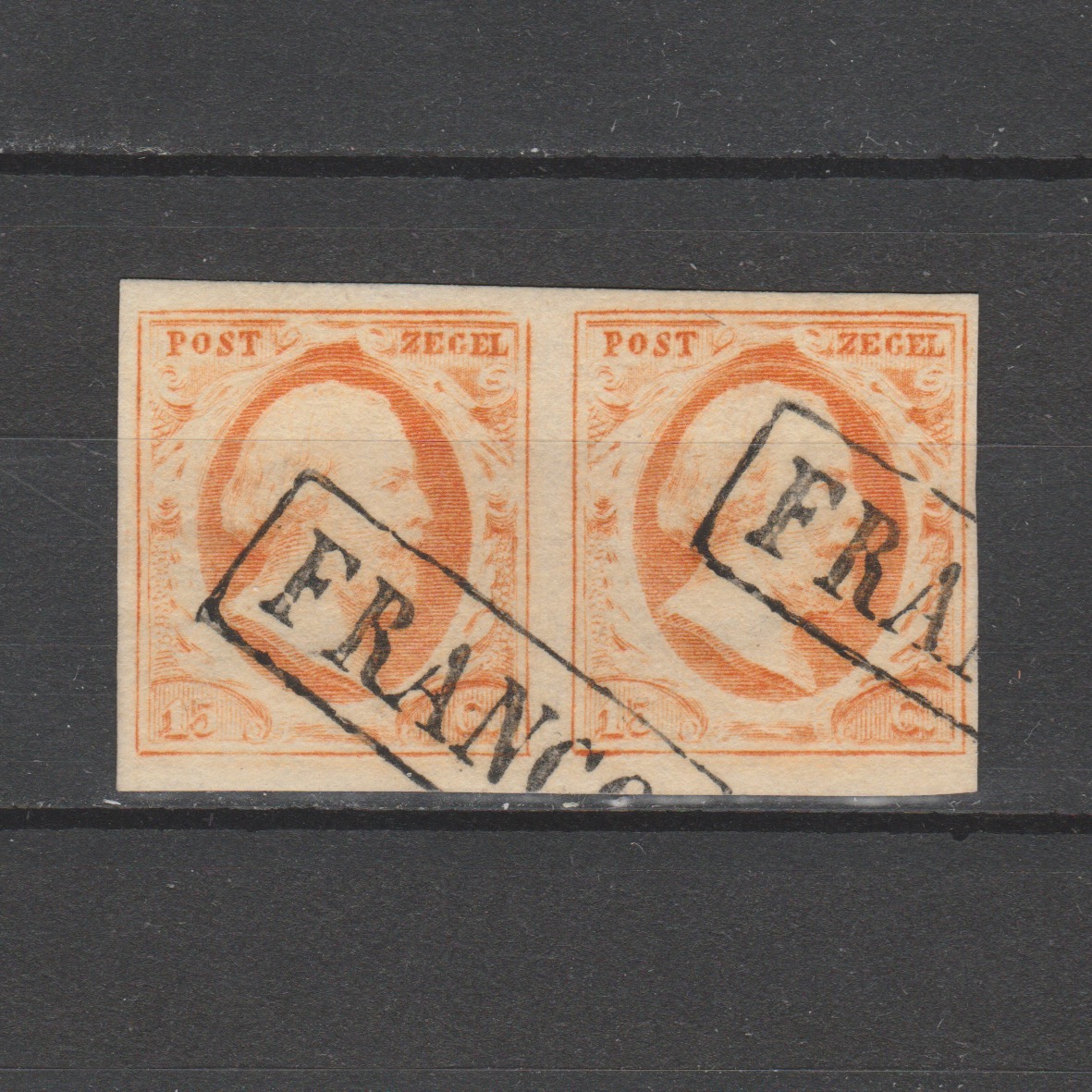 Nederland 1852 3 Willem III gestempeld paar aantal