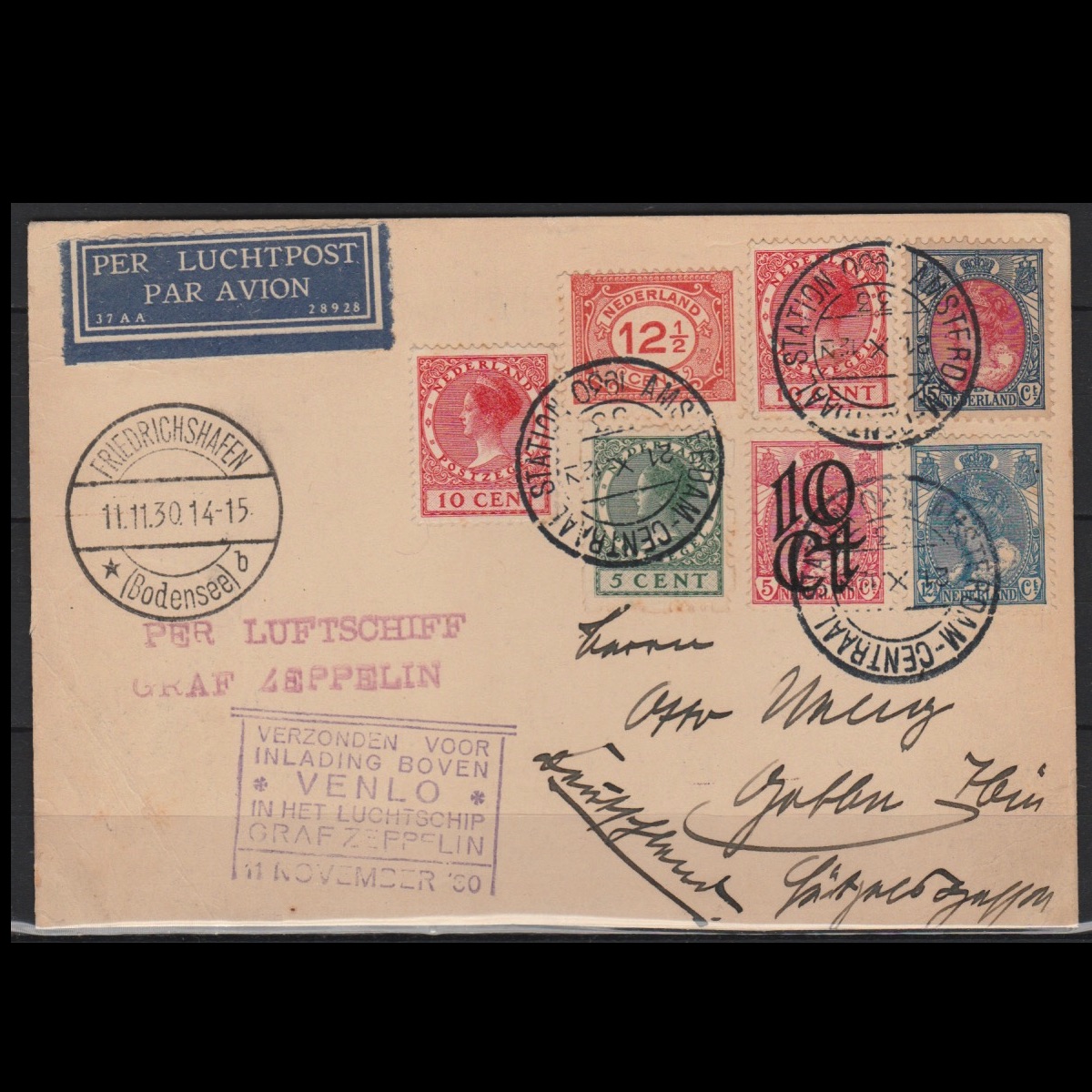 Nederland 1930 11 november Venlo Zeppelin kaart met oa Roltanding