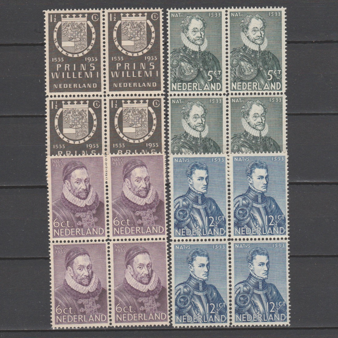 Nederland 1933 252-255 Willem van Oranje Herdenkingszegels in blok van 4