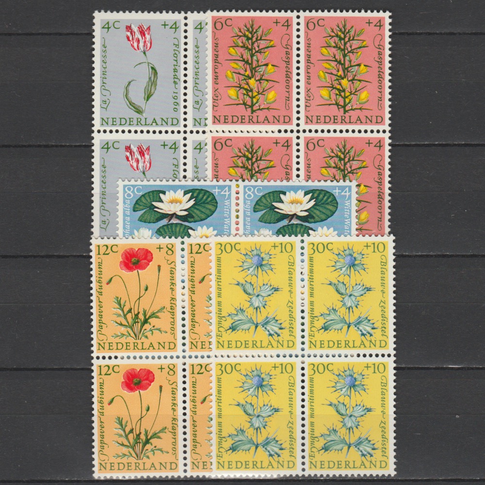 Nederland 1960 738-742 Zomerzegels in blok van 4 met plaatfouten aantal