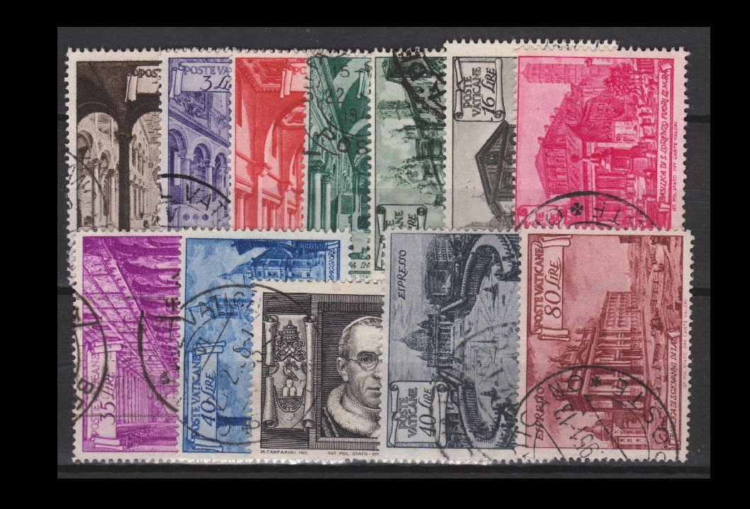 Vaticaanstad 1949 122-130 & E11-E12 gestempeld