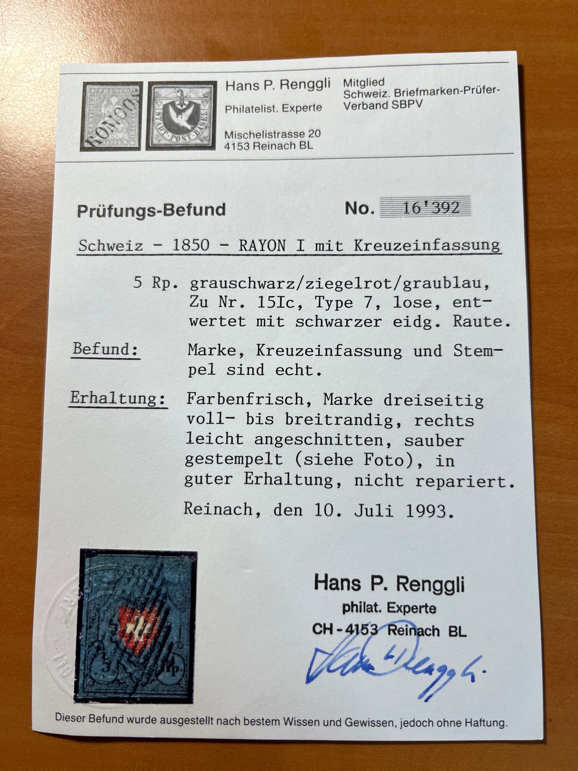 / Zwitserland 1850 7I gestempeld met certificaat