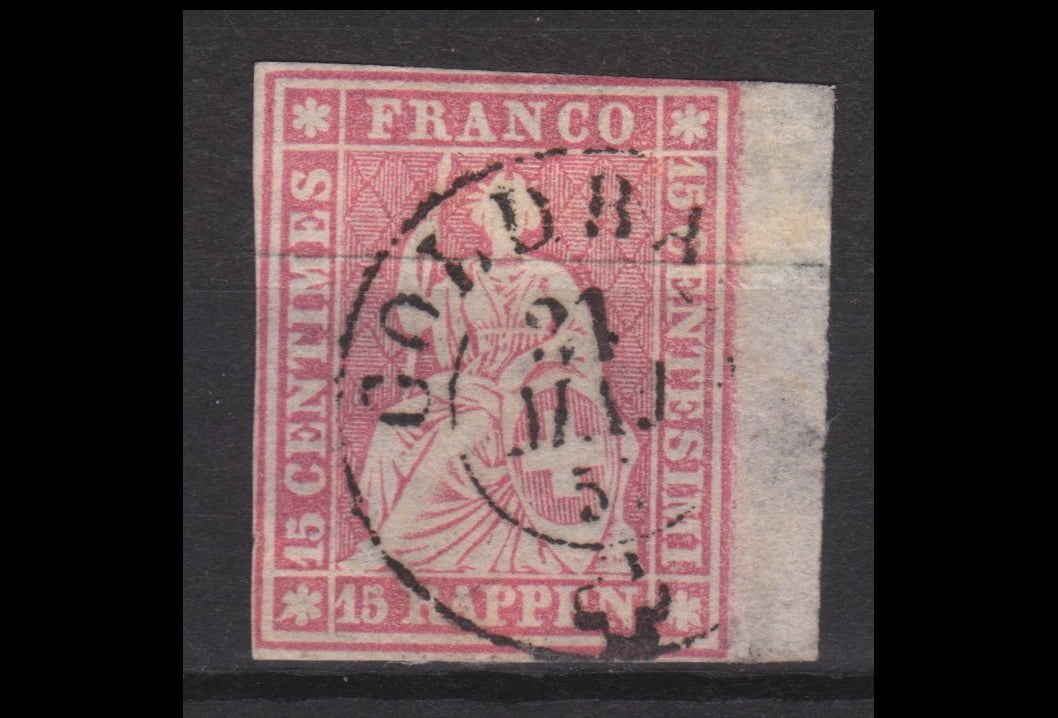 Zwitserland 1855 15 II Azm Strubel gestempeld aantal