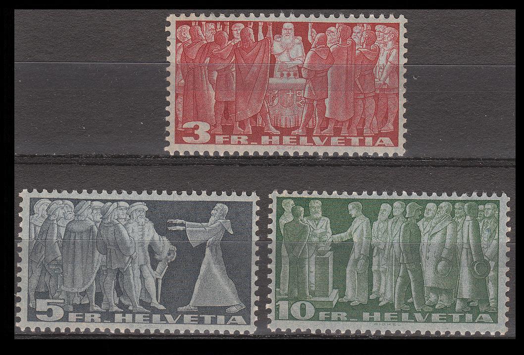 / Zwitserland 1938 328-330v Symbolen van de Democratie op groen grauw papier